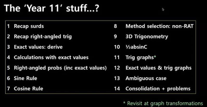 A snap shot of Jo’s recommended sequencing for year 11 Trigonometry – slides by Jo Morgan